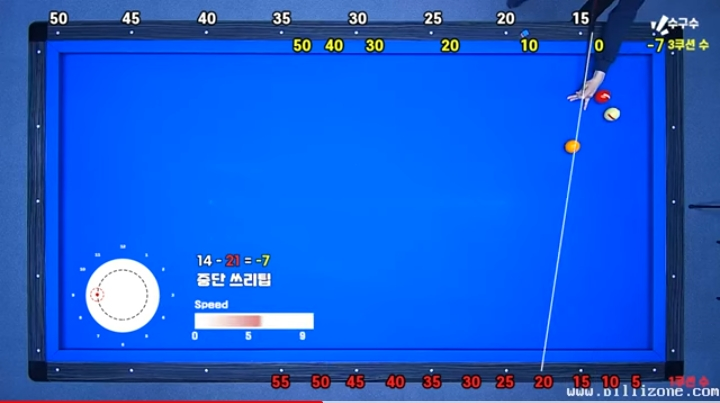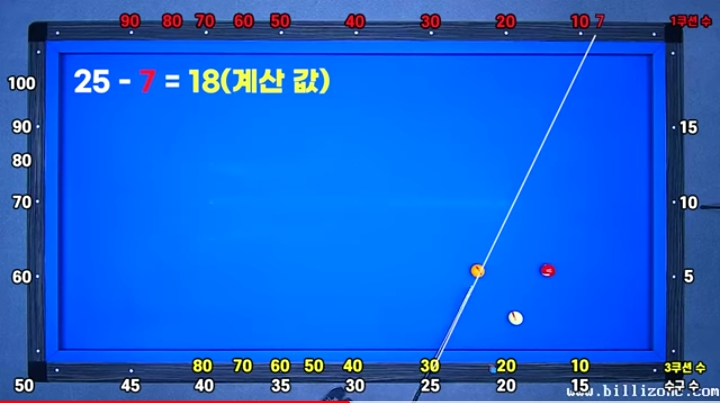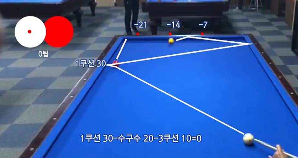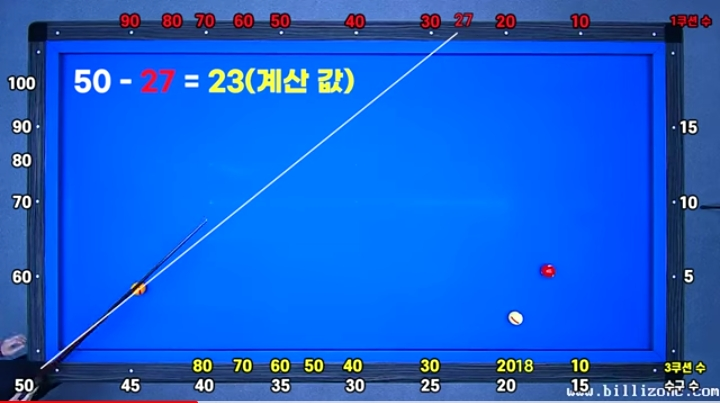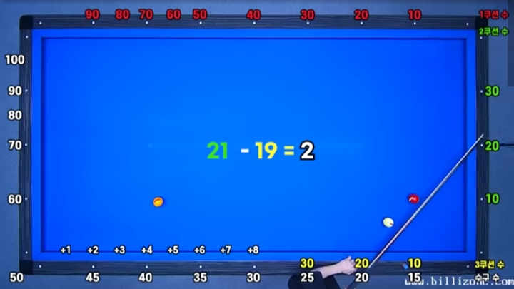 이상대 선수가 50에서 단축 1칸 부분 1적구를 치면 20 도착한다는 데 착안해서...