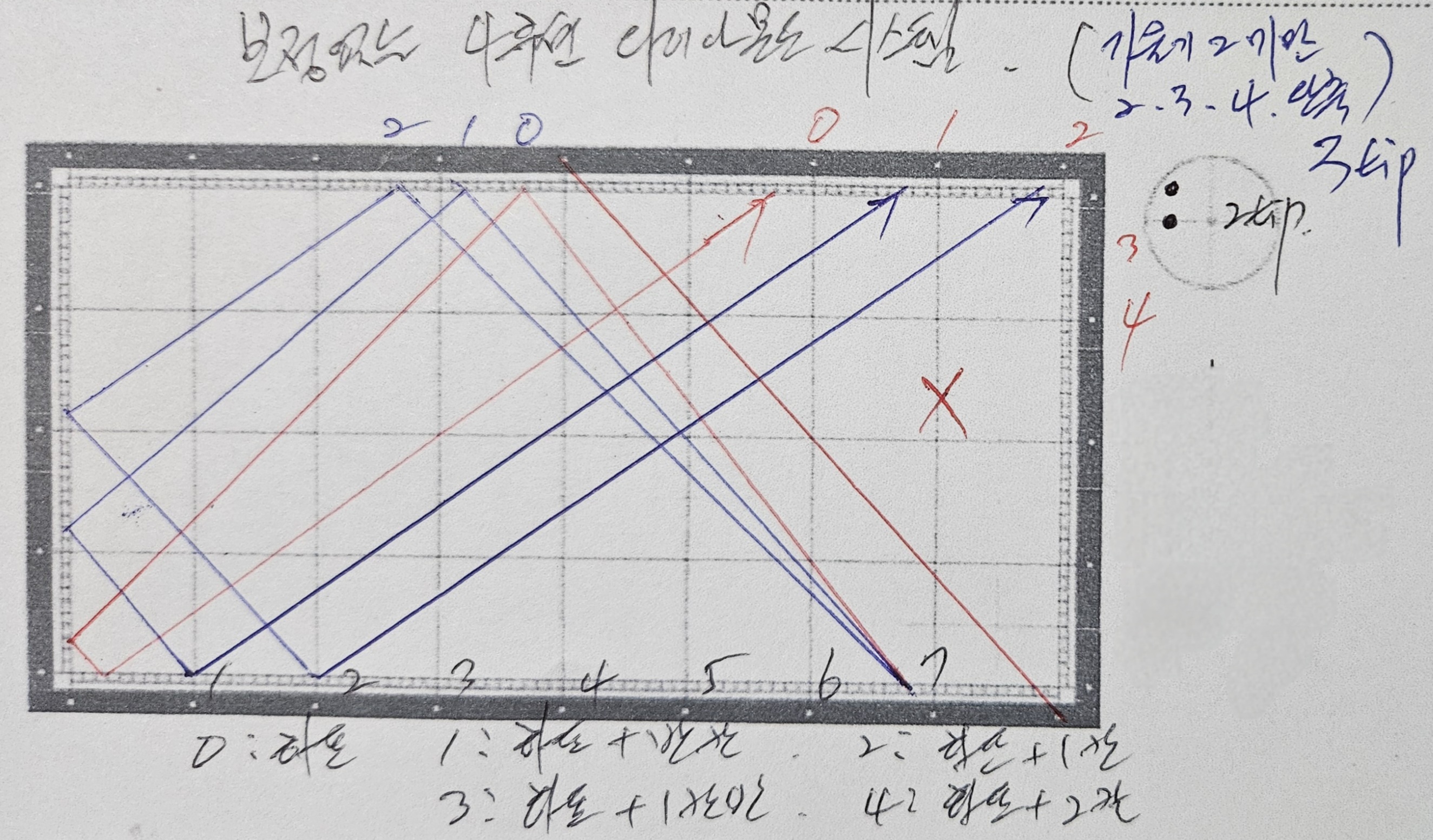 * 1적구가 장축 2번째 칸에서 벗어나면 앞으로는 1칸당 5, 뒤로는 1칸당 -5...